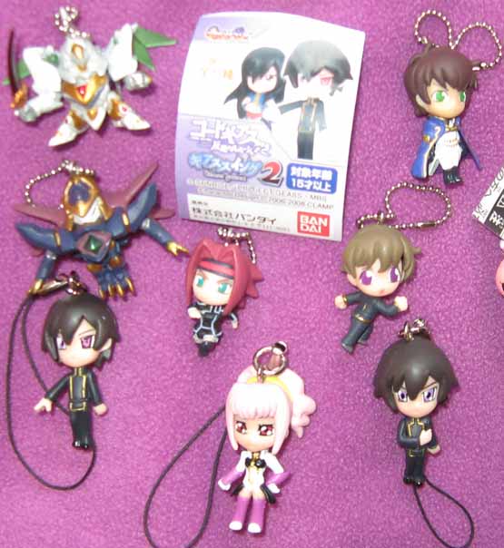 Code Geass: Lelouch of the Revolution. There are two styles of Charm figure: 1 inch and 1 1/2 inch. I have several characters: Lelouch Lamperouge/Zero, Suzaku Kururugi, Kallen Stadtfeld, Knightmare Frame Mech and more. $5.00 for the 1 inch size and $5.75 for the 1 1/2 inch size